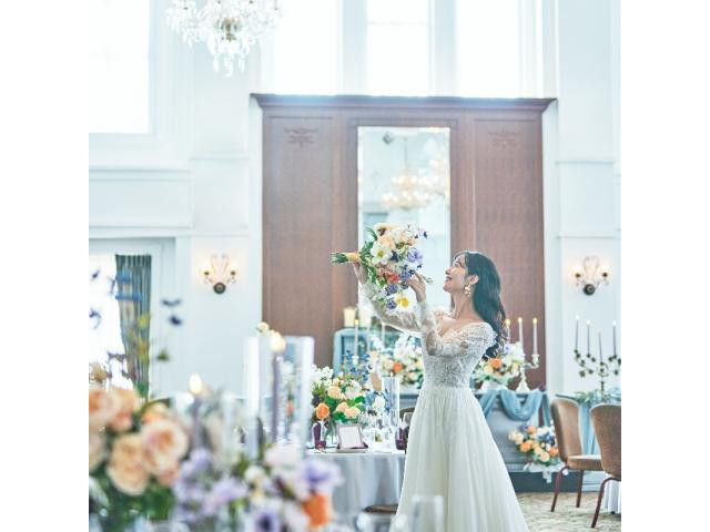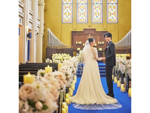 ステンドグラスが輝く大聖堂は、細部まで造り込まれ、ヨーロッパの本物のチャペルのよう。幸せの象徴であるブルーのバージンロードは花嫁をより一層美しく見せる。溜め息がもれるほど感動的な雰囲気を体験してみて。