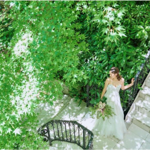 | ガーデン演出 | 有り水の流れるガーデンで フラワーシャワー、デザートブッフェ、ブーケトス、バルーンリリースなどを♪ |