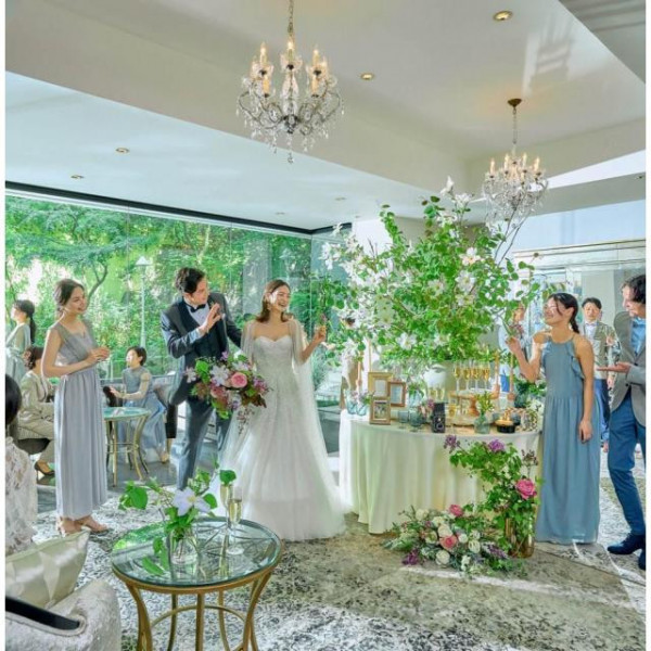 披露宴会場緑と光が溢れる披露宴会場。ガーデン・リビングルームが備え付のフロア貸切のパーティールーム。