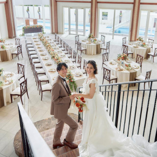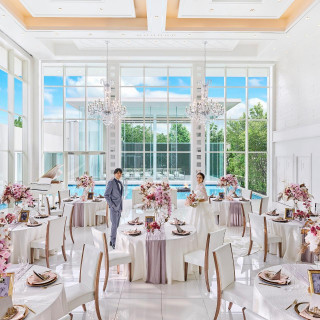壁はガラス張りの会場で水辺や太陽や青空など綺麗な空間と、演出で天井から白い羽がふってくるので素敵な雰囲気になりました。白を基調として広々とした空間で、ゆとりを持って余興や移動ができました。大通りから5分ほどの距離で、イチョウの並木道が近くにあり春夏秋冬で景色が変わり、その近くには緑豊かな公園があります。どの方も笑顔で丁寧に接してくれ説明も分かりやすくアドバイスしてくれるので、打ち合わせに行くのが楽しみになる程、一緒に盛り上がりました。招待したゲストの人に飽きさせないように、空いた時間はマジックなどその場を盛り上げてくださり、料理も美味しいものが多く、色々な人が楽しんでくれました。自分と相手がどんな事をやりたいか、どんなイメージかをちゃんと話し合って、決めていければ準備の段階からわくわく楽しんでいけると思います。当日は緊張はありますが、体感的にあっという間に過ぎてしまうので、楽しむ気持ちが大事だと思います。詳細を見る (408文字)