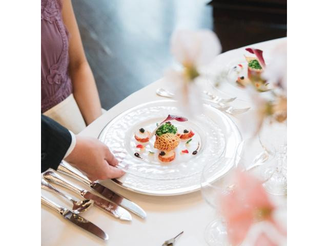 【3万円相当の絶品試食】お料理は大切なゲストの皆様に感謝の気持ちをカタチにして伝えられるおもてなし。オープンキッチンから運ばれる出来立ての全5品のコース料理やスタッフのサービスをぜひご体感ください。