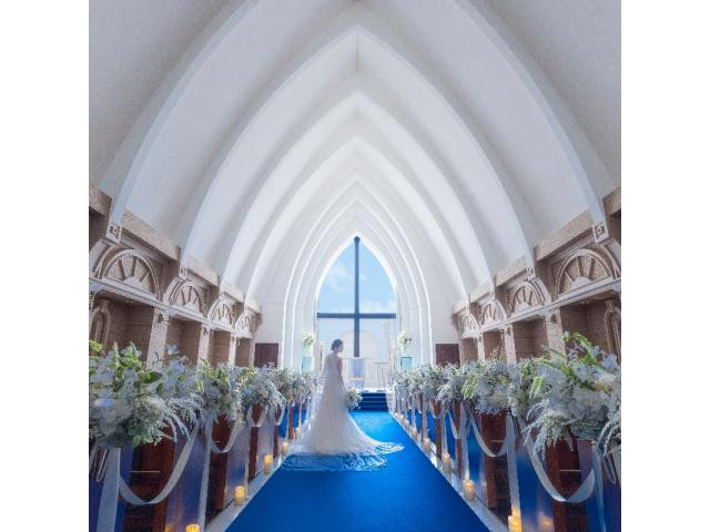 【光溢れる大人気チャペル】天井まで届くガラス張りの祭壇から自然光があふれる人気チャペル♪バージンロード入場&フラワーシャワーの体験も♪ドレスも美しく映える人気チャペルで結婚式当日をイメージして♪