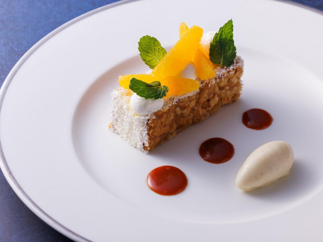 ハイアットリージェンシー京都専属のパティシエが贈る「季節のデザート」をご提供。月毎に、季節の素材を用いながら丁寧にお作りしています。※該当フェアにご参加いただいた新郎新婦様限定