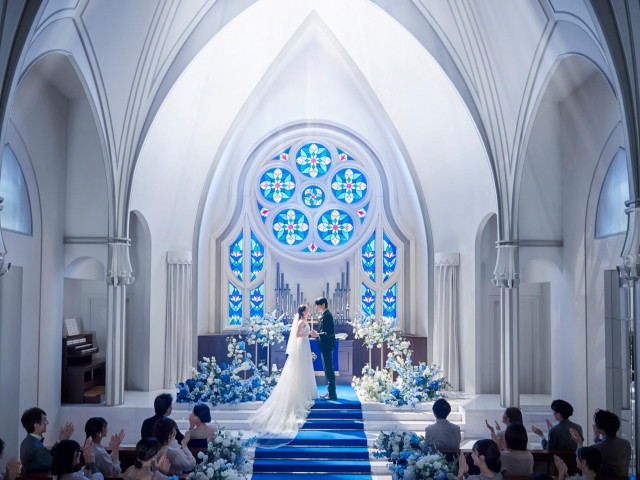 《憧れのロイヤルブルー大聖堂と貸切空間で叶える上質ウエディング》【ご来館特典】和牛×トリュフ&平目のアンクルート×オマールの4万円試食/組数限定ドレス試着【午前来館】タクシー代負担(最大3千円)