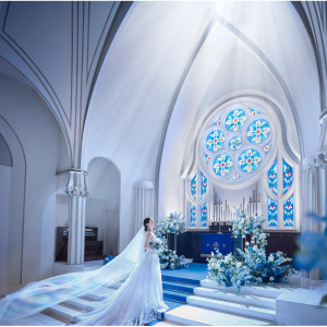 | おすすめ ポイント | 歩みに合わせてスポットライトが灯るロイヤルブルーのバージンロードや、高く設置された聖壇が、花嫁に一層の輝きをもたらしてくれる。大聖堂での厳粛な挙式にゲストも感動! |