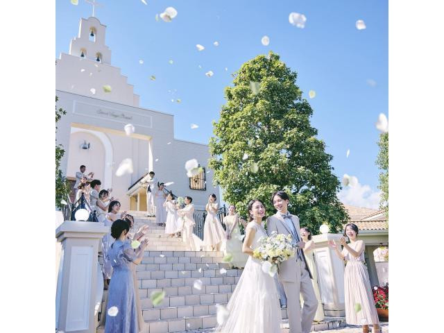 | おすすめ ポイント | 永遠を誓う瞬間には幸せの天使が舞い降ります。挙式後は、太陽の下、大階段でのフラワーシャワーを。 |
