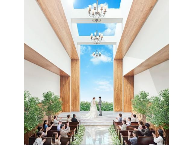【New+*選べる2つのスタイル】天井高9mから降り注ぐ自然光でふたりが輝く”空の教会”。自然体のまま緑に溢れる空間で過ごす”森のチャペル”。全天候型*憧れの大階段で煌めくフラワーシャワー体験も可能♪