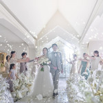 披露宴会場前のロビーでフラワーシャワー