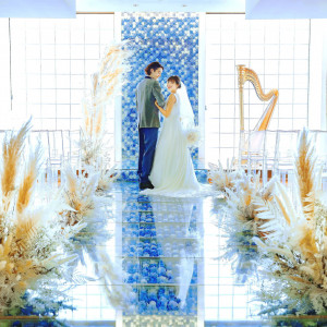 | おすすめ ポイント | 6000本の青いバラが敷き詰められたガラスのバージンロードが幻想的な挙式を演出します。リングドックなどペットの参加も可能ですので、お二人らしいオリジナリティ溢れる挙式をご提案して参ります。 |