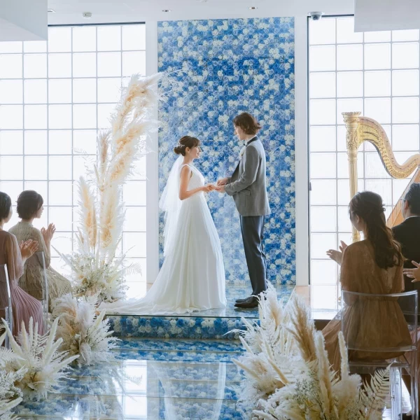 | おすすめ ポイント | 6000本の青いバラが敷き詰められたガラスのバージンロードが幻想的な挙式を演出します。リングドックなどペットの参加も可能ですので、お二人らしいオリジナリティ溢れる挙式をご提案して参ります。 |