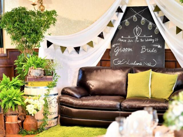 プライベートガーデンを望む大きな窓からなる会場は開放感抜群!パーティ会場だけではなく、テラスやホワイエも自由におふたりらしくコーディネートしよう★