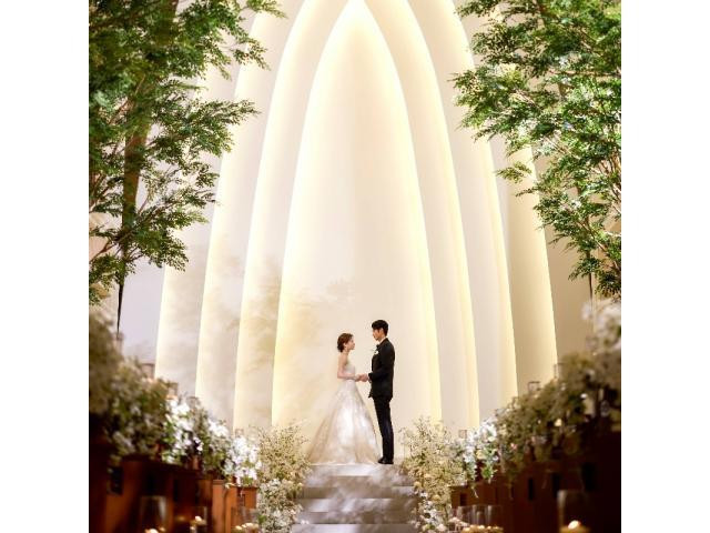 【木漏れ日に包まれる大聖堂がグランドオープン】天井高12m、バージンロード25m、圧巻のスケール誇る大聖堂。ゲストに囲まれアットホームに誓うオリジナルのセレモニーをご提案いたします