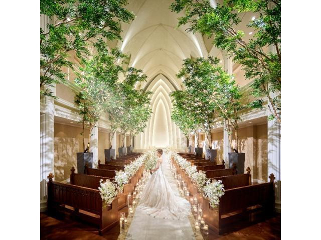 【リニューアル1周年*木漏れ日に包まれるチャペル】天井高12m、バージンロード25m、圧巻のスケール誇る空間。ゲストに囲まれアットホームに誓うオリジナルのセレモニーをご提案いたします