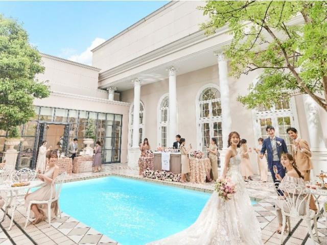 【平日フェアなら3つのパーティ会場が見学OK】憧れの階段入場もOK♪プールやガーデンでのウェルカムパーティ、シェフによるフランベなど多彩な演出が叶う3会場の中からふたりにぴったりな場所をご提案します!