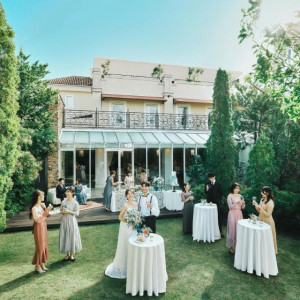 ガーデン演出 | 有りパーティーのクライマックスに花火を打ち上げたり、緑溢れるガーデンにてデザートブッフェの演出もオススメ! |