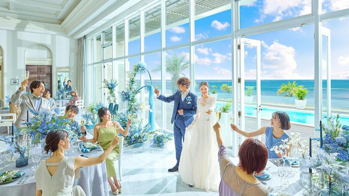 | おすすめ ポイント | ガラスウォールのパーティー会場に差し込む暖かな光、ウッドデッキガーデンの向こうに広がる碧い海、青い空が創り出すアットホームで和やかな雰囲気はゲストの皆様にも大変好評です。