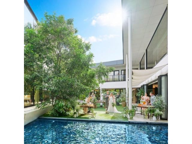 【貸切ガーデン&オープンキッチン付き:2~130名まで】◆天井高7M、大きな窓が特徴のパーティ会場はナチュラル×開放的な雰囲気が人気◆ガーデン入場、階段入場、大型スクリーンを使った様々な演出も叶う