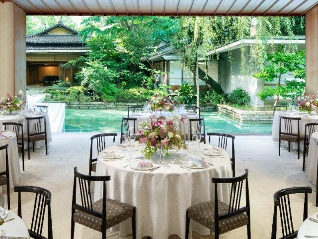 【歴史と格式を感じる披露宴会場】国賓の会食にも使用される「水鏡の間」は必見。大きな窓からは、四季折々に趣深い日本庭園を一望でき、ゲストに心安らぐ時間を過ごしてもらえるはず。ぜひフェアにて体験を。
