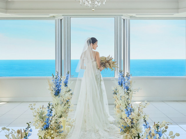 海と空に包まれる地上150mの展望フロアで、少人数婚にぴったりの「10名30.8万円~」プラン〈期間限定〉ご案内中。準備は最短1ヶ月から対応可能だから、お急ぎの方も安心。挙式のみ・写真のみもご相談ください。