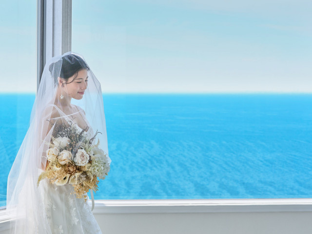 【海のチャペルがリニューアル!】地上150mから絶景を望む“スカイチャペル”と、優しい光に包まれる“ガーデンチャペル”。異なる魅力の2会場からお好みで選んで、感動の入場体験を♪