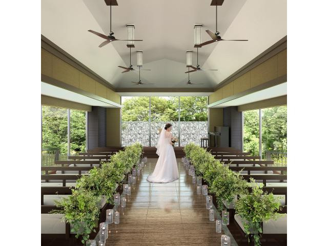【より素敵にチャペルリニューアル☆彡】美しい緑と水の煌めきに包まれた、陽光が降り注ぐチャペルがついにリニューアル!フェアでは入場体験やフラワーシャワーなど、ゲスト参加型のオリジナルセレモニーをご紹介!