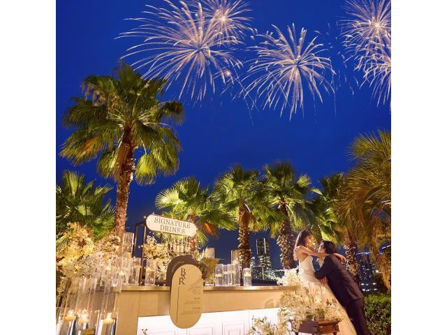 海に面した会場のガーデンの先にはみなとみらい一望の大パノラマが広がる!おふたりだけのプライベートステージで自由で特別なウェディングが叶う♪