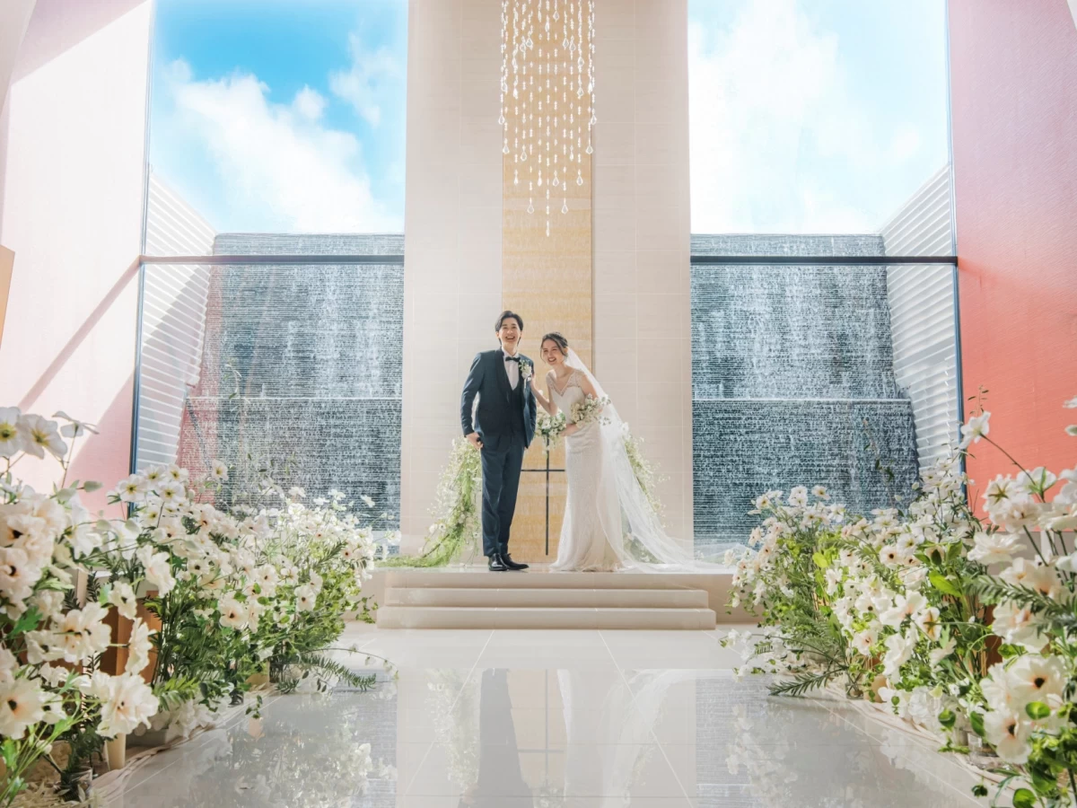ゲストの控え室から挙式会場に行くまでが外なので、滝が流れてて綺麗でした!挙式会場のバージンロードも短すぎず長すぎずよかったです!詳細を見る (326文字)
