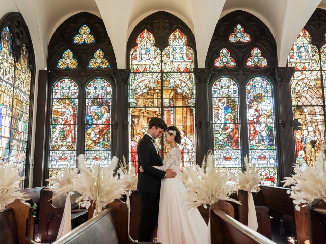 おすすめ ポイント | 100年の時を刻んだ英国アンティークステンドグラスに包まれた教会。 360度全面にあるその輝きに酔いしれる。 “本物”にこだわり続けた教会ならではの荘厳な空間を是非お楽しみ下さい。 |