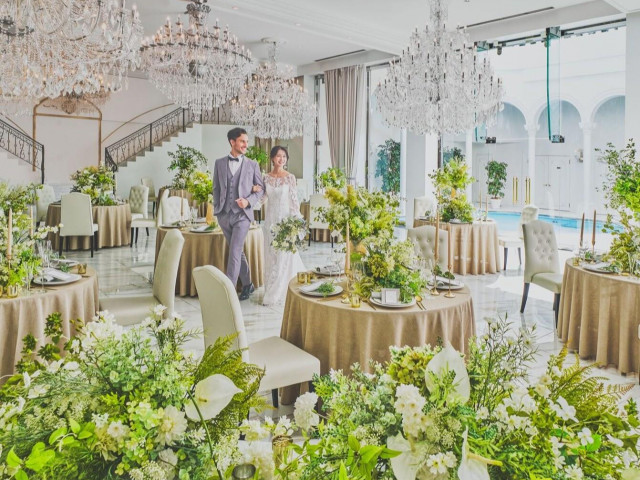| おすすめ ポイント | 雰囲気の違った会場が2つございます。スワロフスキーを散りばめた宝石箱の様なシャンデリアを持ち、高級感と可愛らしさを兼ね備えた会場。もう1つはプールガーデン付き!チャペルとのギャップが人気の秘密!