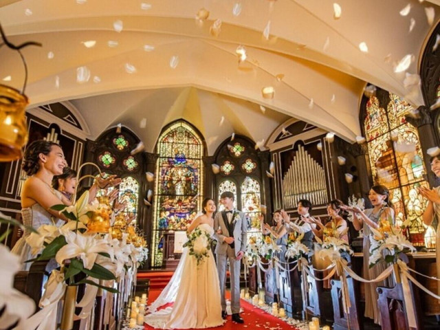 | おすすめ ポイント | 100年の時を刻んだ英国アンティークステンドグラスに包まれた教会。 360度全面にあるその輝きに酔いしれる。 “本物”にこだわり続けた教会ならではの荘厳な空間を是非お楽しみ下さい。 |