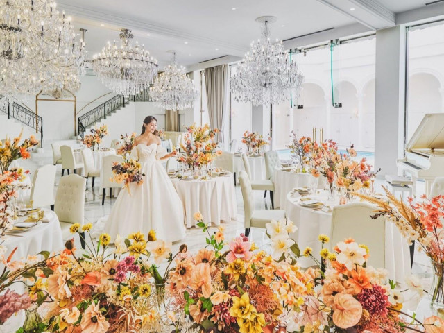 【フロア全体を自由自在コーディネート】フロア貸切で好きなコーディネートが可能!自然光がシャンデリアに反射する幻想的で明るい”ジュワルミエール”ラグジュアリーな大人かわいい”メインダイニング”から選べる