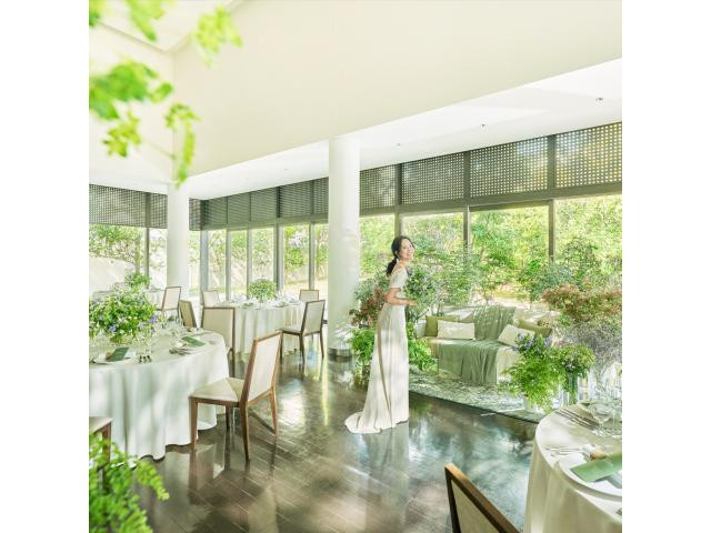 【大人数から少人数まで対応可能】和洋に対応♪自然溢れるナチュラルな雰囲気の会場だからこそ、おふたりのコーディネートのイメージにぴったり!大自然の緑の中で叶える、テラス付き少人数用のスペースもご用意◎