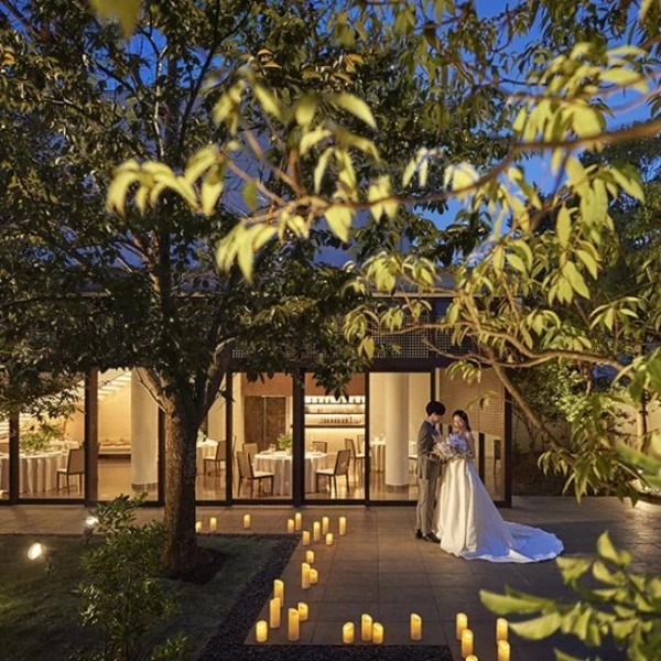 | おすすめ ポイント | 白壁と木目が織りなす上質感と、テラスへ繋がるオープンエアの開放感が魅力。3画面のスクリーン映像や階段入場、花火の演出も人気。