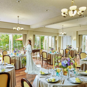ふたつある会場のうちのひとつは、全体的に白っぽく、洗礼された雰囲気の会場。もうひとつは、屋根が低く、部分的に木があしらわれているカジュアルな雰囲気の会場。シェフの方が、料理の説明を一つ一つ分かりやすくしてくださった。その中でも、クリスタルポテトという、透明なポテトチップスがお肉の上に乗っていて印象的だった。どの料理も美味しく、美しかった。可動式のテラスがあり、雨の日でも記念撮影やブーケトスが外でできる。料理がとても美味しい。こだわりの自家製のパン、バターが特に美味しく、ネット販売もしており人気。参列してくれる方々を近くに感じながら、おもてなししたい方におすすめ。料理の味を重視している方におすすめ。詳細を見る (302文字)