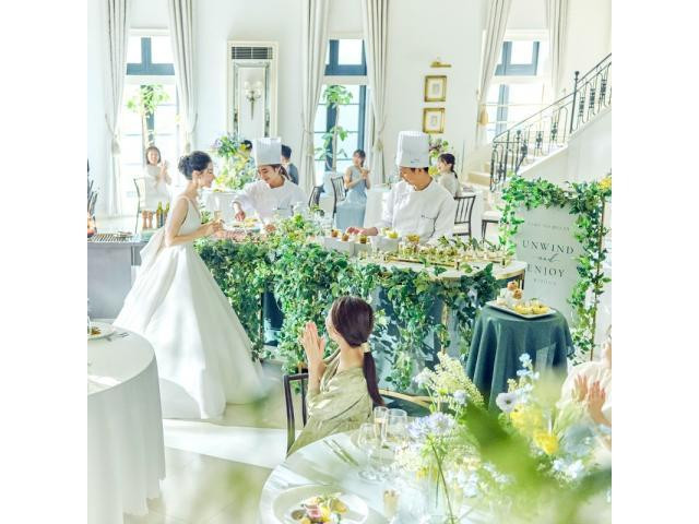 【模擬挙式でイメージ膨らむ】大きな窓から差し込む自然光×緑や木々に包まれる空間から温かいアットホームな雰囲気が生まれる!ゲストとの距離が近く笑顔や感動が直に伝わる!《1件目見学で挙式料全額プレゼント》