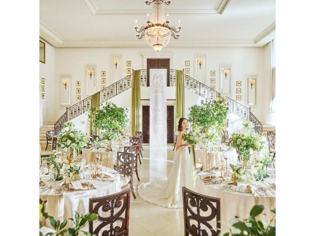 | おすすめ ポイント | 天井が高く、両階段が優美に映えるパーティ会場。白を基調としているので、どんなコーディネートも素敵にマッチします。プール付きのガーデンと隣接しているので、とても開放的な空間です。