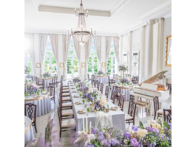 【本番同様のコーディネートを大公開★年間1万組以上の結婚式を手掛ける大手T&Gグループ】貸切の邸宅はレイアウトや装飾、クロスの色もすべてが自由。トレンドを押さえながらふたりに合わせたコーデをご提案♪