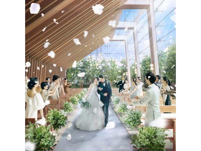 《最上階に佇む天井高8Mチャペル》圧巻の自然光と木の温もり感じる空間が温かい挙式シーンを演出♪ゲストとの距離感も近く二人の臨場感が伝わり感動の時間に!《1件目の会場見学:挙式料15万円プレゼント》