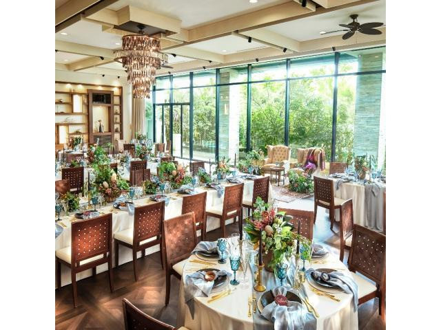 【パーティ会場もリニューアル!】一面ガラス張りの先に四季彩る緑*都心リゾートを感じる水*非日常を演出する自然光*お二人もゲストも肩肘張らない「自然体」でいられる上質空間。※リニューアル特典でお得が叶う