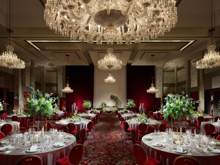 都内最大級の天井高10mに輝くフランスバカラ社製のシャンデリアが印象的なボールルーム
