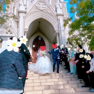 【挙式会場について】花嫁なら誰もが一度は憧れるような素敵なチャペルです。長いバージンロード、光が差し込む綺麗なステンドグラス、ドレスを楽しめる階段、どれをとっても素敵でした。【スタッフ・プランナーについて】スタッフの方々はみなさん感じの良い対応をしてくださいました。披露宴は親族のみで行われたため参列できなかったのですが、とてもノリの良いスタッフさんが楽しませてくれて、少人数でも楽しかったと新婦から聞きました。【料理について】お料理はいただいていませんが、新郎新婦は大満足のようでした。【ロケーション(立地、交通アクセス)について】あおなみ線野跡駅からは徒歩7分ほどで電車でもアクセスしやすいと思います。高速道路や名四国道も近く駐車場も広いので車でも便利な立地です。【この式場のおすすめポイント】大聖堂が本当に素敵です。外に出ると大階段があり、フラワーシャワーもできて最高の演出だと思います。詳細を見る (325文字)