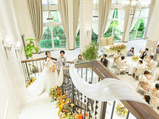 | おすすめ ポイント | フィンガーフードを片手にウェルカムパーティから始まる非日常のひととき。ゲストをもてなす細やかな工夫が、パーティの雰囲気を決める!専属ピアニスの生演奏にのせて階段入場もドラマティックに叶う。