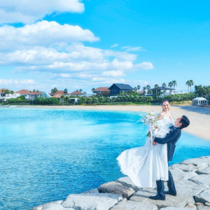 ガラス張りで開放感があり、海が見える挙式会場に惹かれました。白を基調としていて、晴れた日は青空との色の組み合わせもとても綺麗です。噴水が出る演出があるのも素敵だと思ったポイントです。窓が大きく、ヤシの木と海が見える景色がとても素敵でした。リゾート地に来たような雰囲気で、明るい披露宴会場でした。エンドロール、写真(アルバム)ドレス、タキシードの割引その他希望に合わせてサービスしていただきました。海鮮をたくさん使ったお料理で、両親が喜んでいました。ゲストに合わせてメニューの変更や調理方法まで細かく変えて下さり感謝しています。海が見える式場を探していたので、景色は最高でした。駅からは近くないですが、シャトルバスがあるので便利ですし、その分リゾート地のようなロケーションが堪能できてよかったです。スタッフの方みなさまが明るくて、打ち合わせの段階から楽しかったです。当日はすごく盛り上げてくださったおかげで楽しんで1日過ごさせていただきました!挙式会場、ガーデン、披露宴会場の景色とスタッフの方のご対応準備は大変でしたが、スタッフの方が丁寧に教えてくださるのでわからないところはたくさん質問して不安を減らしてもらいました。そのおかげで当日はあまり緊張せずとても楽しい1日になりました!詳細を見る (541文字)