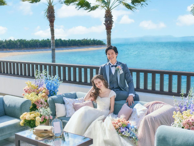 - ゲストも安心の施設とロケーション- 【都心の喧騒から離れたリゾート空間】開放的で洗練された空間と充実の施設でゲストも安心。貸切可能なパーティ会場から臨む景色もゲストへのおもてなしに。目の前に広がる海ロケーションでの前撮りも人気♪