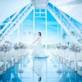 Blue Bijou(青い宝石)と名づけられた水のチャペル列席者全員が立会人、温かい一体感が生まれるオリジナル度人前式。まさに「新しい家族になる」家族今です。挙式料には。司指揮者、ボーカリスト2名生演奏、式次第、装花が含まれます。キリスト教選択も可。