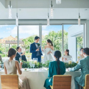 ガラス張りで開放感があり、海が見える挙式会場に惹かれました。白を基調としていて、晴れた日は青空との色の組み合わせもとても綺麗です。噴水が出る演出があるのも素敵だと思ったポイントです。窓が大きく、ヤシの木と海が見える景色がとても素敵でした。リゾート地に来たような雰囲気で、明るい披露宴会場でした。エンドロール、写真(アルバム)ドレス、タキシードの割引その他希望に合わせてサービスしていただきました。海鮮をたくさん使ったお料理で、両親が喜んでいました。ゲストに合わせてメニューの変更や調理方法まで細かく変えて下さり感謝しています。海が見える式場を探していたので、景色は最高でした。駅からは近くないですが、シャトルバスがあるので便利ですし、その分リゾート地のようなロケーションが堪能できてよかったです。スタッフの方みなさまが明るくて、打ち合わせの段階から楽しかったです。当日はすごく盛り上げてくださったおかげで楽しんで1日過ごさせていただきました!挙式会場、ガーデン、披露宴会場の景色とスタッフの方のご対応準備は大変でしたが、スタッフの方が丁寧に教えてくださるのでわからないところはたくさん質問して不安を減らしてもらいました。そのおかげで当日はあまり緊張せずとても楽しい1日になりました!詳細を見る (541文字)