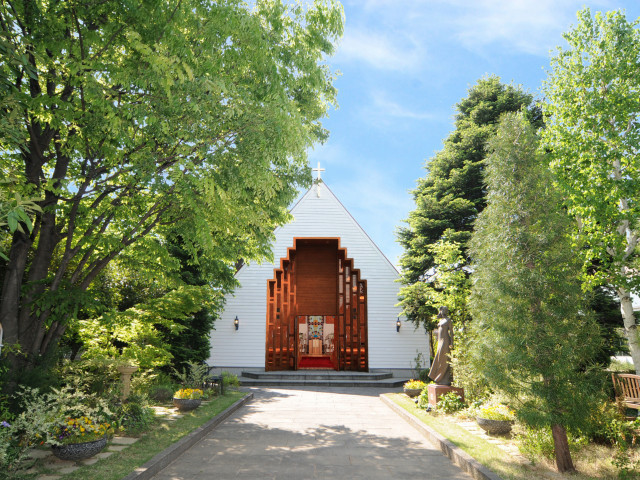 【緑に囲まれた静かな環境×木造のあたたかなチャペル×美味しいお料理】が揃った結婚式ができます◎特に「チャペル」と「お料理」を重視なさる方にオススメの会場!