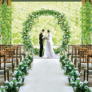 おすすめ ポイント | 水辺に浮かぶ空中庭園の中にあるようなチャペルで、大理石のバージンロード、木のベンチ、3面から差し込む光、流れる滝、とても温かな挙式となることまちがいなしのチャペル |