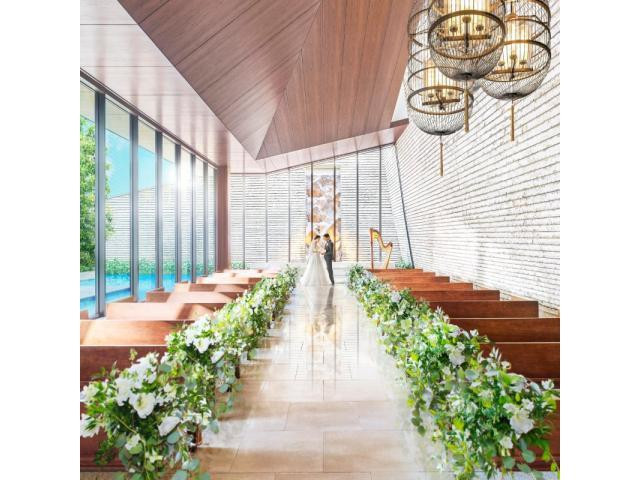 | おすすめ ポイント | 水辺に浮かぶ空中庭園の中にあるようなチャペルで、大理石のバージンロード、木のベンチ、3面から差し込む光、流れる滝、とても温かな挙式となることまちがいなしのチャペル |