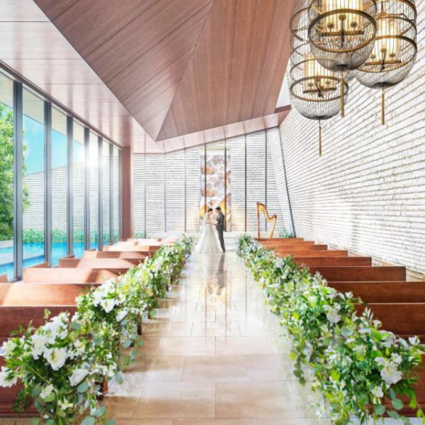 | おすすめ ポイント | 水辺に浮かぶ空中庭園の中にあるようなチャペルで、大理石のバージンロード、木のベンチ、3面から差し込む光、流れる滝、とても温かな挙式となることまちがいなしのチャペル |